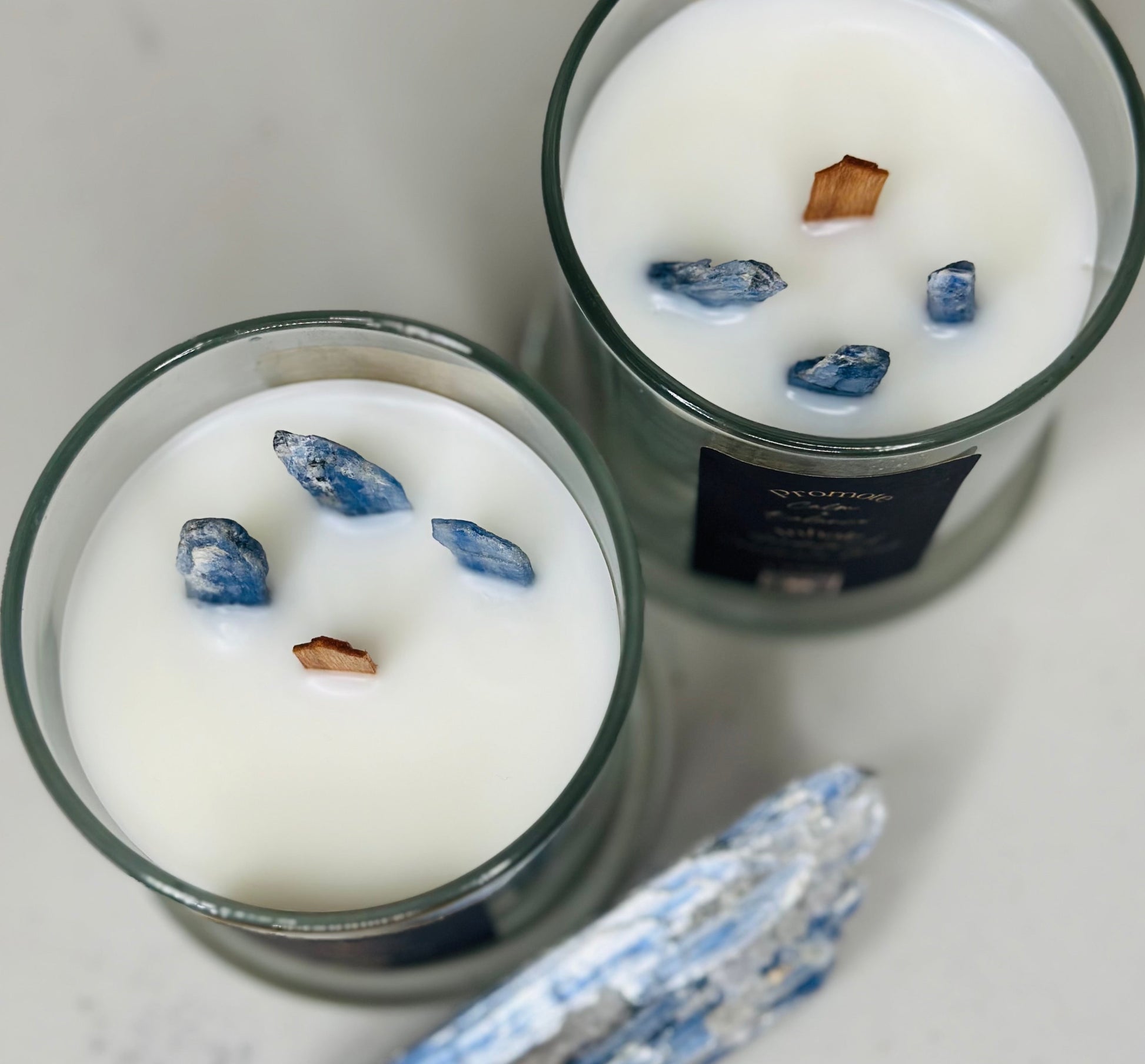 🤍Our healing line's Sanctum of Serenity candle is infused with Kyanite. Kyanite has a soothing effect on the whole body, bringing peace. Due to the fact that Kyanite does not hold negative vibrations or energy, it never requires clearing.